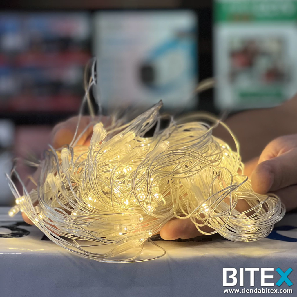 ⚪ Cable transparente y 96 luces cálidas